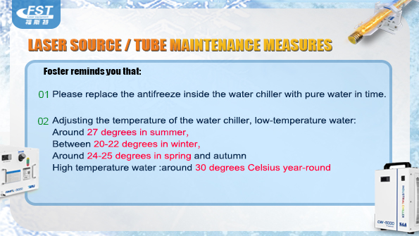 Adding antifreeze in winter and replacing it with purified water in spring is a standard seasonal maintenance practice for laser equipment.